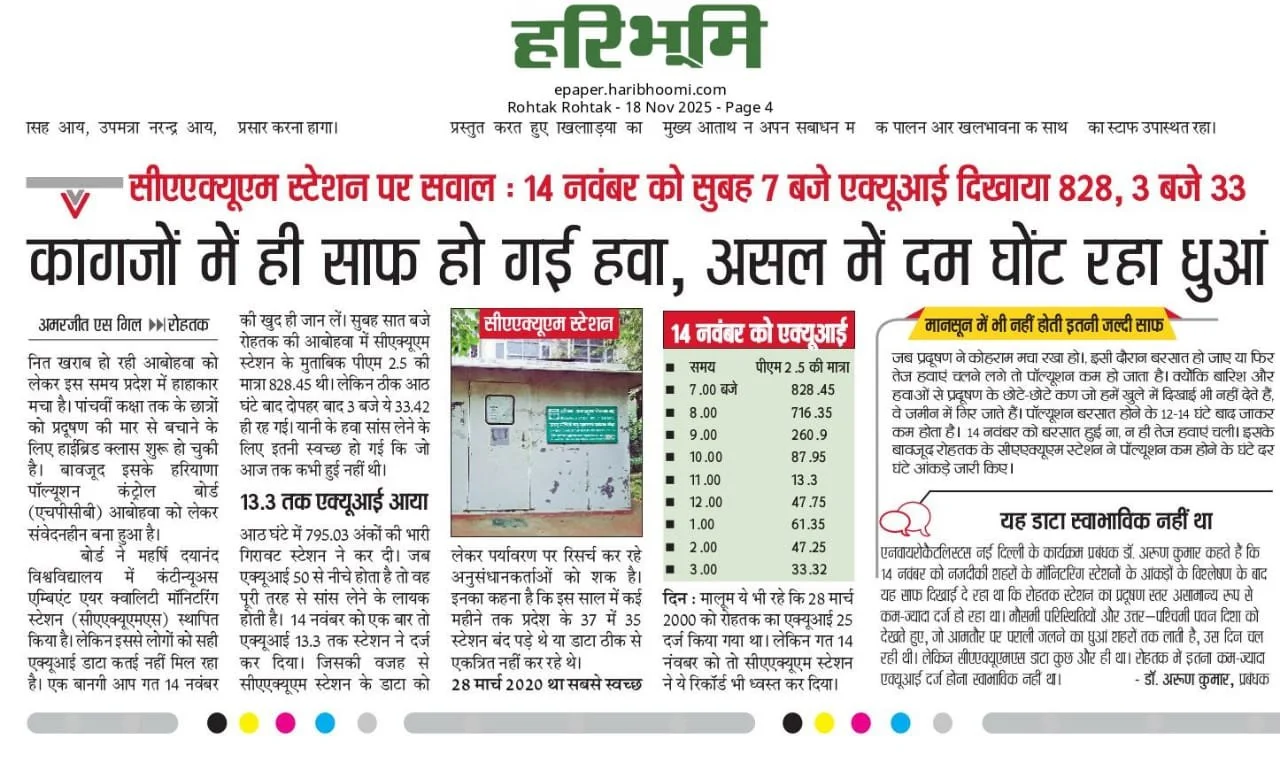This report highlights a major concern regarding the data from the CAQM's Air Quality Index (AQI) station in Rohtak.