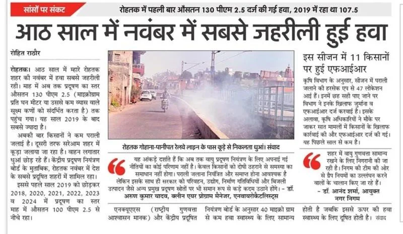 The air quality in Rohtak has deteriorated severely this November, marking the worst levels in the last eight years. PM2.5 pollution averaged 130 this month, which is significantly higher than previous years. Authorities report that crop-residue burning by farmers and pollution from factories and vehicles have caused the sharp rise in toxic air. Legal notices and FIRs have been filed against farmers involved in stubble burning, but the air quality continues to decline. Health experts warn that the current level of pollution can cause serious breathing problems and other health risks for residents.