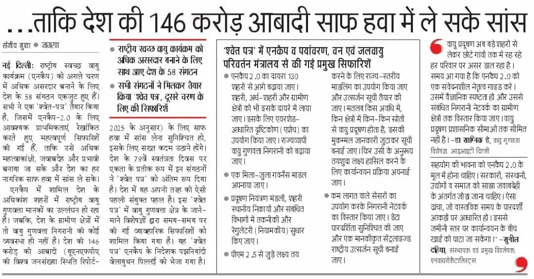 … ताकि देश की 146 करोड़ आबादी साफ़ हवा में ले सके सांस Dainik Jagranदैनिक जागरण Aug 24 Written By Shubhi Awasthi Delhi Shubhi Awasthi