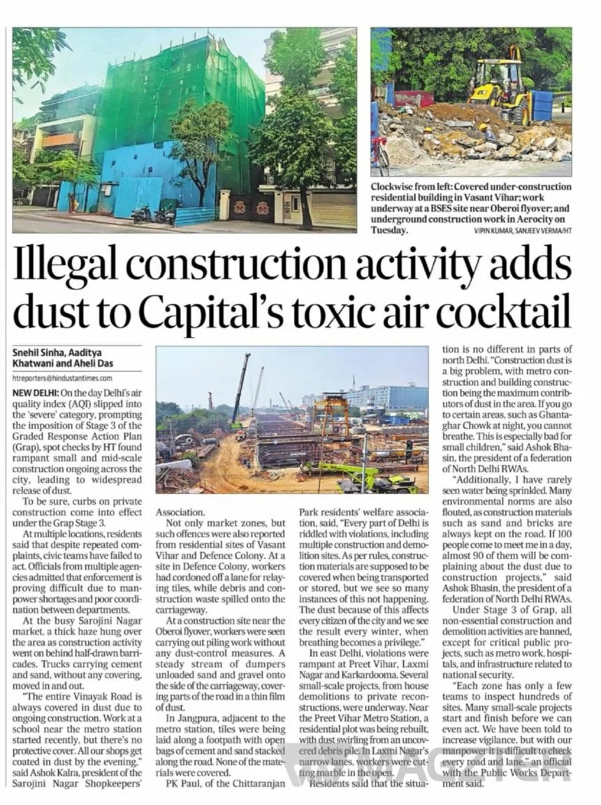 Delhi's air quality has become "very poor," largely due to dust from rampant and illegal construction across the city.