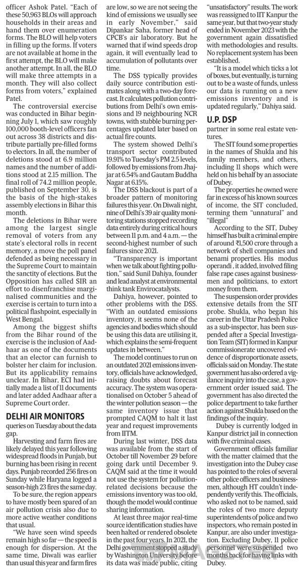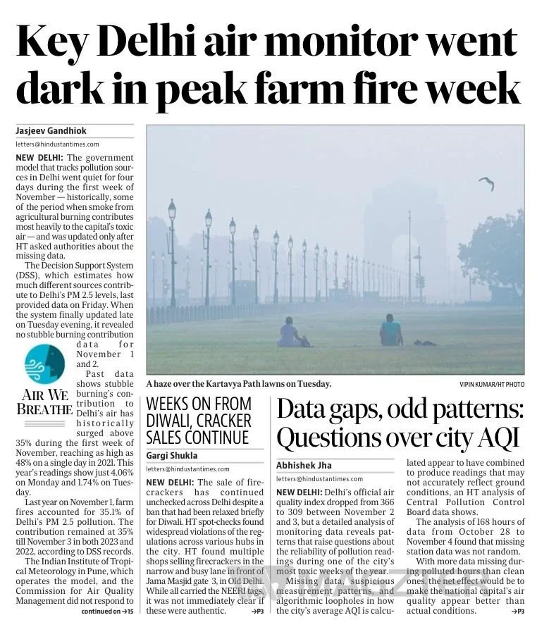 Key Delhi air monitor went dark in peak farm fire week Hindustan Times Nov 5 Written By Zainab Ashraf Read from the newspaper clippings attached below: Delhi Air Pollution Monitoring Stations Zainab Ashraf
