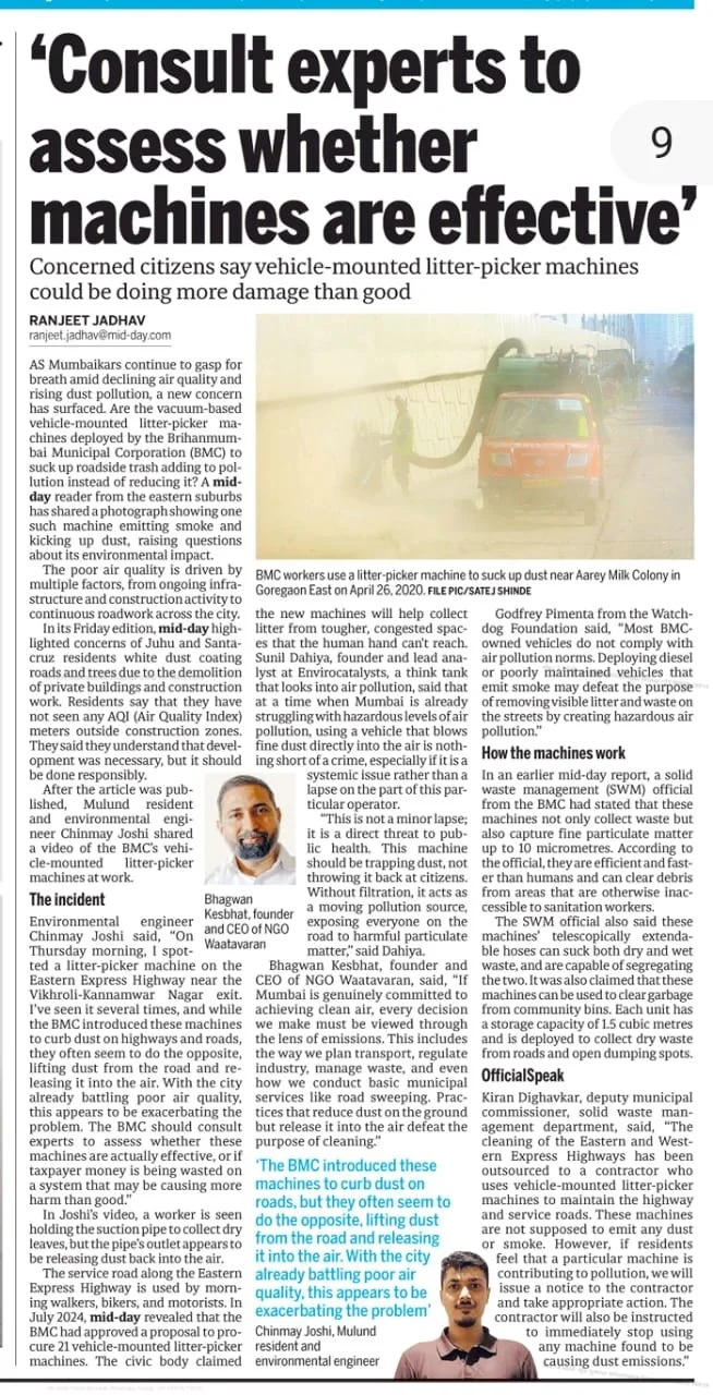 A new report has criticised the BMC's mechanical street sweepers. The machines, designed to pick up litter, are under fire for allegedly making the city's air pollution worse. The problem is that their brushes and blowers stir up fine, toxic dust from the roads into the air, which people then breathe in. This claim has started a debate about whether these cleaners are causing more harm than good for the city's environment.