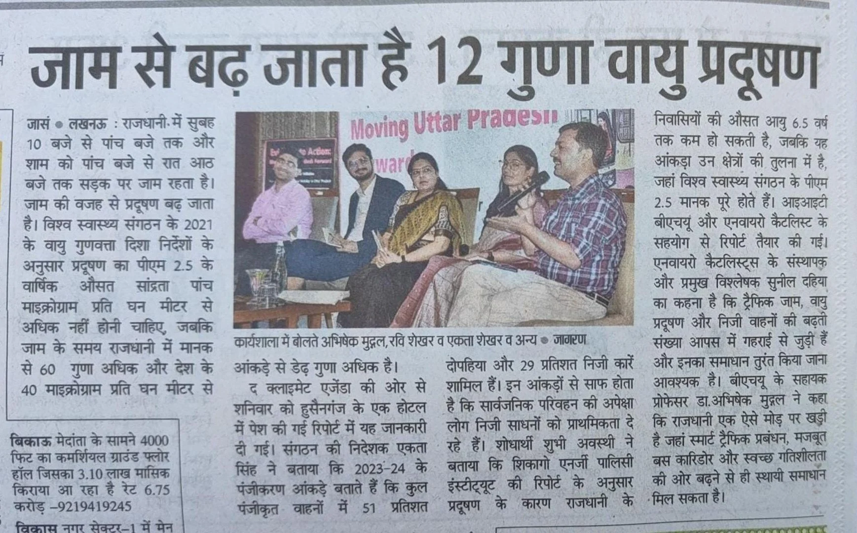 The report says that traffic congestion in Lucknow is causing a sharp rise in air pollution. During peak hours, pollution levels increase many times above safe limits set by the World Health Organization. Because of poor traffic flow and high use of private vehicles, residents may lose an average of 6.5 years of life. Experts stress that weak public transport and growing vehicle numbers are making the problem worse.