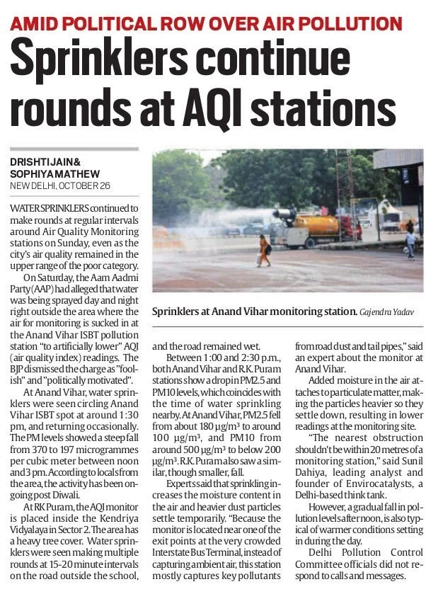Sprinklers continue rounds at monitoring stations amid row over air pollution in Delhi